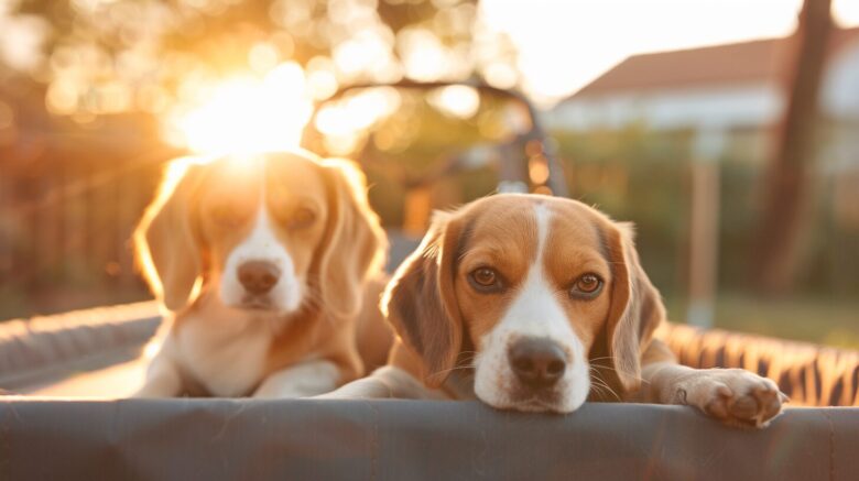 具体的に言うと、ビーグル2匹の場合(それぞれ10〜12kg)なら、30kg耐荷重モデルが安心です。